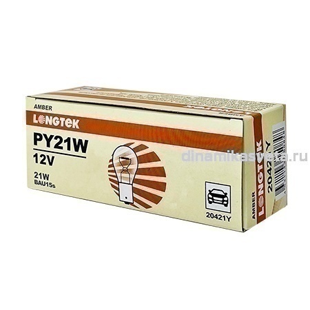 Автолампа LONGTEK 20421Y PY21W(1156) 12V 21W BAU15s Amber (ЯНТАРНЫЙ) (К10)