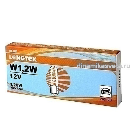 Автолампа LONGTEK 20512B W1,2W(T5) 12V 1,20W W2x4,6d Blue (К10)