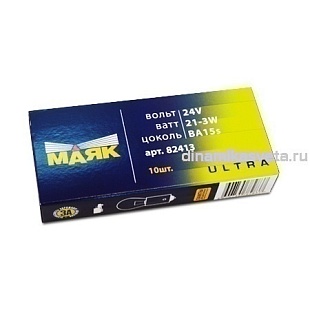 Автолампа МАЯК 82413 P21W(1156) 24V 21W BA15s Ultra (К10/1000)
