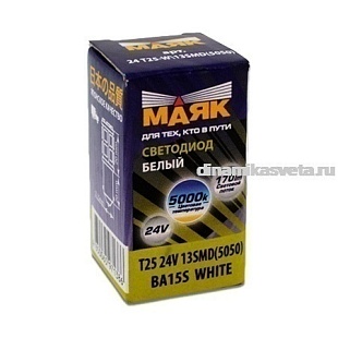 Автолампа LED МАЯК 24-T25/13SMD P21W(1156) 24V BA15s White (БЕЛЫЙ,5050/13) (К10/500)