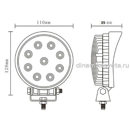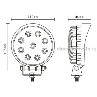 • Мощность 27W • Рабочее напряжение 9-32V DC • Степень влагозащиты IP 67 • Светодиоды EPISTAR 9 x 3W • Цветовая температура 6500-7000K • Световой поток 1380 лм • Литой алюминиевый корпус • Материал линзы: PMMA • Монтажная скоба: Нержавеющая сталь • Сертификат:CE, RoHs • Угол рассеивания света: 30° • Габаритные размеры (мм): Ø110х30 • Замена WL-330021S