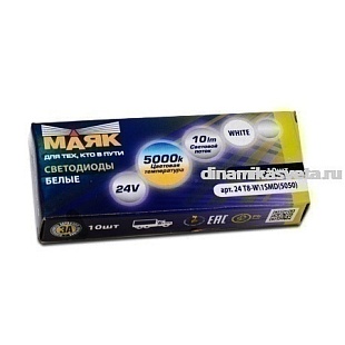 Автолампа LED МАЯК 24-T8/1SMD T4W(BA9S) 24V BA9s White (БЕЛЫЙ,5050/1) (К10/500)